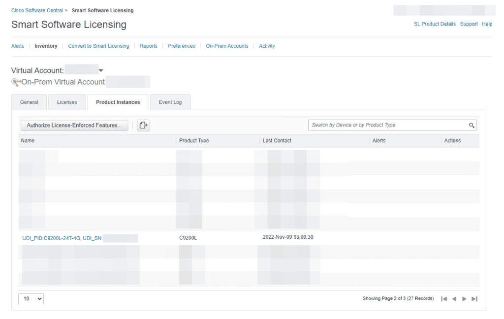 Last report file write: <none>CSSM側でレポートを受信していれば、管理画面で以下のように製品インスタンスが自動的に登録されます。